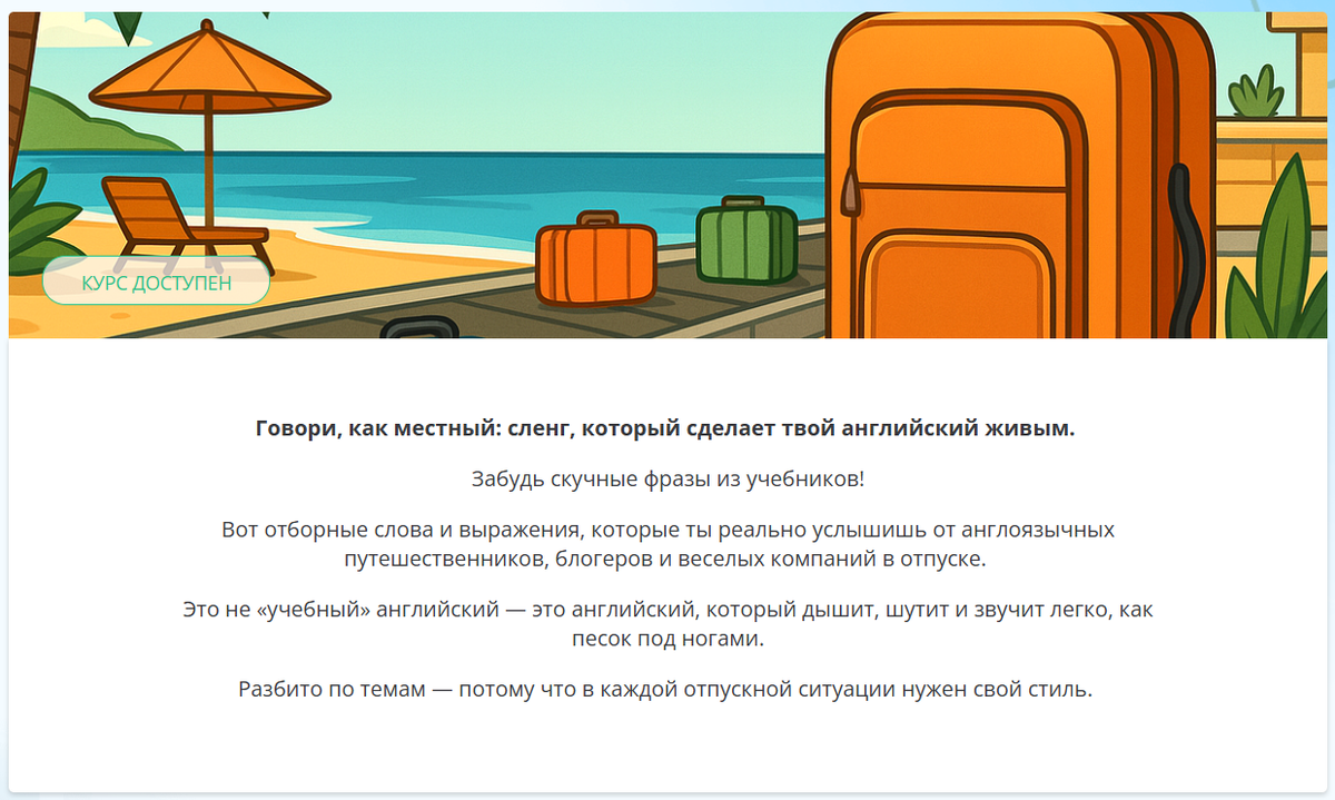 Курс Vacation Vibes — это способ продлить отпуск и добавить английский в повседневную жизнь.