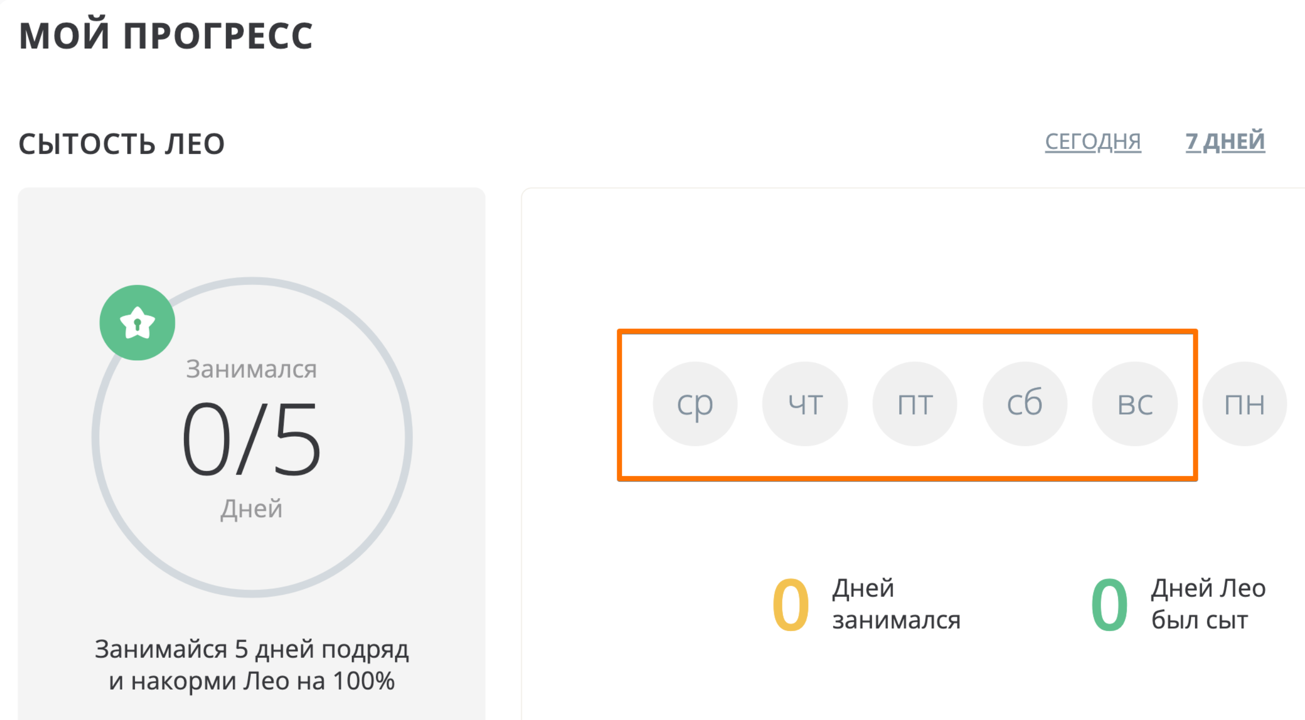 В приложении сытость можно увидеть на экране профиля, а на сайте в разделе «Мой прогресс».- Не прерывай пятидневку в эти дни и награда будет твоя.
